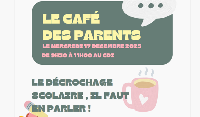 Café des parents le 17 décembre de 9h30 à 11h au CDI