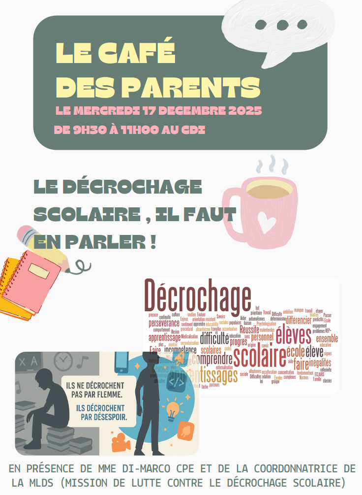Café des parents le 17 décembre de 9h30 à 11h au CDI