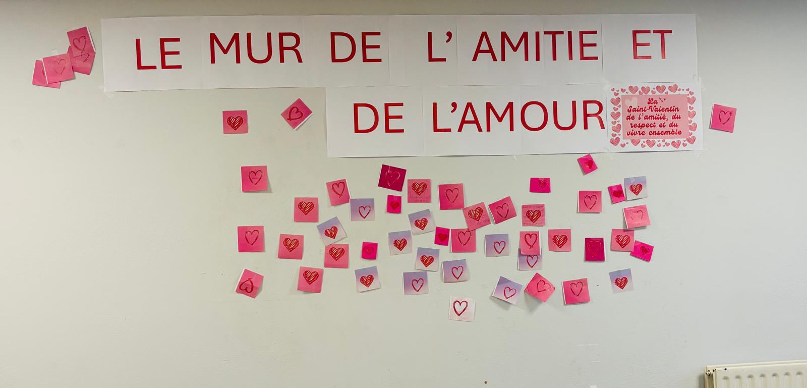 Jusqu’au 14 février, le mur de l’amitié et de l’amour a pris place en salle de permanence.